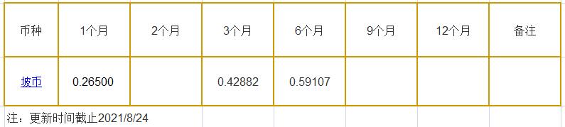 8月24日新加坡银行间同业拆借利率坡币: 1月期报0.26500%, 3月期报0.42882%, 6月期报0.59107%。