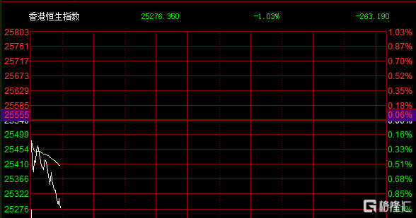 港股三大指数短线下挫,恒指跌幅扩大至1.23%,国指跌1.06%,恒生科技指数跌0.7%。保险、电力、海运板块跌幅靠前,大型科网股多数下跌,网易跌超3%,百度、小米、腾讯均跌超2%,惟快手涨4%。