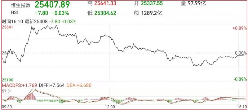 昨日回顾: 1.上周五恒指早市先低开78点至25337点,其后再进一步轻回至25307点。但由于沽压并不明显,加上维稳买盘开始涌现,故整个大市卒在淡静中缓步推上。此后逐渐回落转跌,全天呈冲高回落走势。截至收盘,恒生指数跌0.03%,报25407.89点,国企指数涨0.23%,报8957.81点,红筹指数涨0.84%,报3832.37点;
