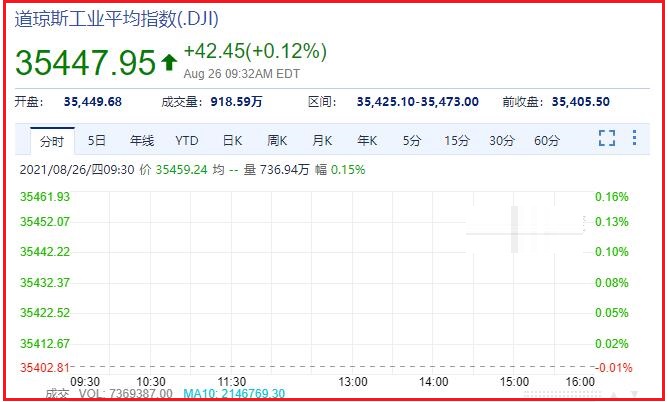 美股开盘:道指小幅高开约60点;欢聚时代涨超12%,传两大股东计划溢价私有化,估值或达80亿美元;开心汽车涨近6%,此前宣布将收购河南御捷时代汽车100%股权。 1、截止发稿时间,道琼斯报于35442.75:,成交量:1082.99万 2、美股快报:美国至8月21日当周初请失业金人数为35.3万人,前值为34.8