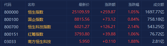 此前连续下跌的港股市场今日集体反弹,早盘三大指数均大涨超2.5%,恒生科技指数更是一度暴涨4.5%。午后指数涨幅集体收窄,恒指涨1.05%报25109点,国指涨0.84%报8815点,恒生科技指数涨2.14%报6021点。 盘面上,连续下跌的大型科网股反弹,网易大涨5.6%,小米涨近4%,快手、腾讯、美团皆上扬,惟阿里巴巴