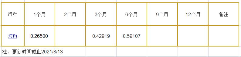 8月13日新加坡银行间同业拆借利率坡币: 1月期报0.26500%, 3月期报0.42919%, 6月期报0.59107%,