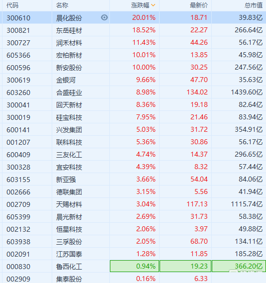 有机硅板块强势走高,千亿有机硅龙头合盛硅业大涨近9%,晨化股份、宏柏新材、新安股份涨停,东岳硅材、润禾材料、金银河等大幅走高。 昨日晚间,合盛硅业发布业绩报告显示,其上半年实现营收约77.02亿元,同比增长84.11%;归属于上市公司股东的净利润约23.72亿元,同比增长428.26%,创历史同期新高。