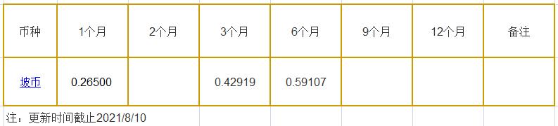 8月10日新加坡银行间同业拆借利率坡币: 1月期报0.26500%, 3月期报0.42919%, 6月期报0.59107%,