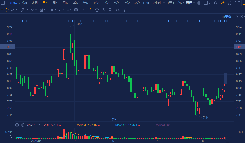 卫信康(603676.H)涨停,报8.84元创逾3个月新高价,总市值38.4亿元。 公司上半年实现营业收入5亿元,同比增长77.68%;实现净利润5332.5万元,同比增长81.33%。营业收入大幅增长主要系注射用多种维生素(12)贡献新的增量,且新产品销售量增长所致。此外,卫信康2021上半年经营活动产生的现金流量净额增加6