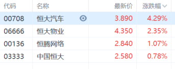 恒大汽车涨超4%,恒大物业涨超2%,恒腾网络、中国恒大跟涨。