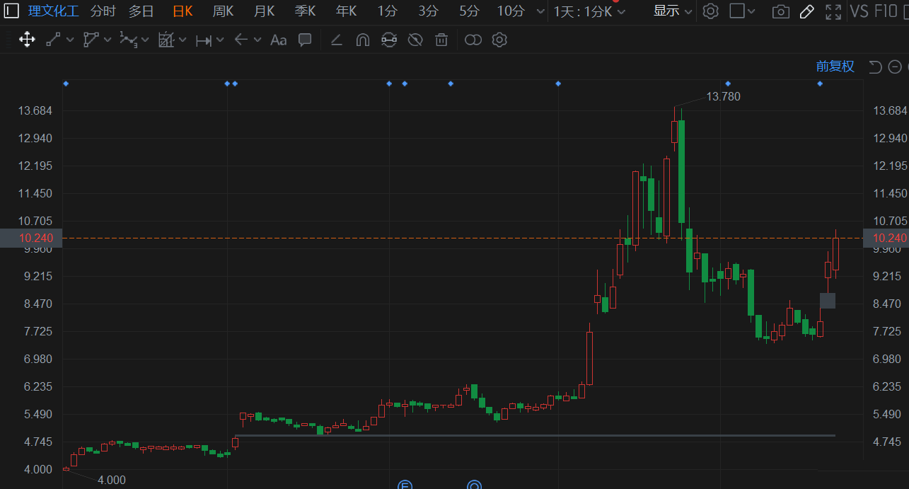 理文化工(0746.HK)延续强势上涨行情,现涨6.67%,3日累计升幅达35%,报10.24港元创一个月新高,总市值为84.5亿港元。 公司日前拟投资项目于生产高端氟聚合物及锂电池新材料。项目拟定生产规模为年产2万吨聚偏氟乙烯(VDF)、1万吨六氟磷酸锂(LiF6),并配套新建年产5万吨氟化氢。