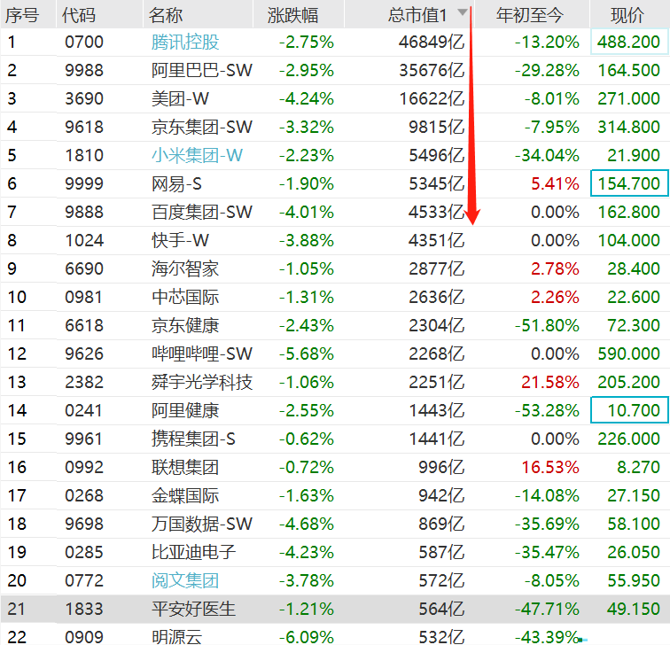 隔夜美股热门中概股集体收跌,拖累今早港股市场科技股集体走低,恒生科技指数跌近3%。其中,腾讯、阿里、小米、京东健康、阿里健康均跌超2%,美团、百度、比亚迪电子跌超4%,京东、快手跌超3%,哔哩哔哩跌超5%。 隔夜美股市场拼多多跌超7%,网易、阿里、京东、百度跌超3%。