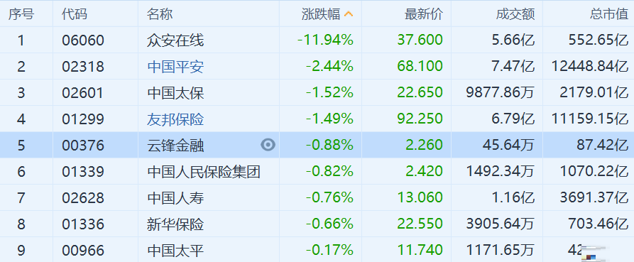 保险股普跌,其中国内首家互联网保险公司众安在线跌近12%领跌,中国平安跌2.44%,中国太保跌1.52%。据券商中国,为营造公平公正的市场秩序,切实维护保险消费者合法权益,银保监会决定开展互联网保险乱象专项整治工作。近日,银保监会在行业内部发布了《关于开展互联网保险乱象专项整治工作的通知》,将针对四大乱象