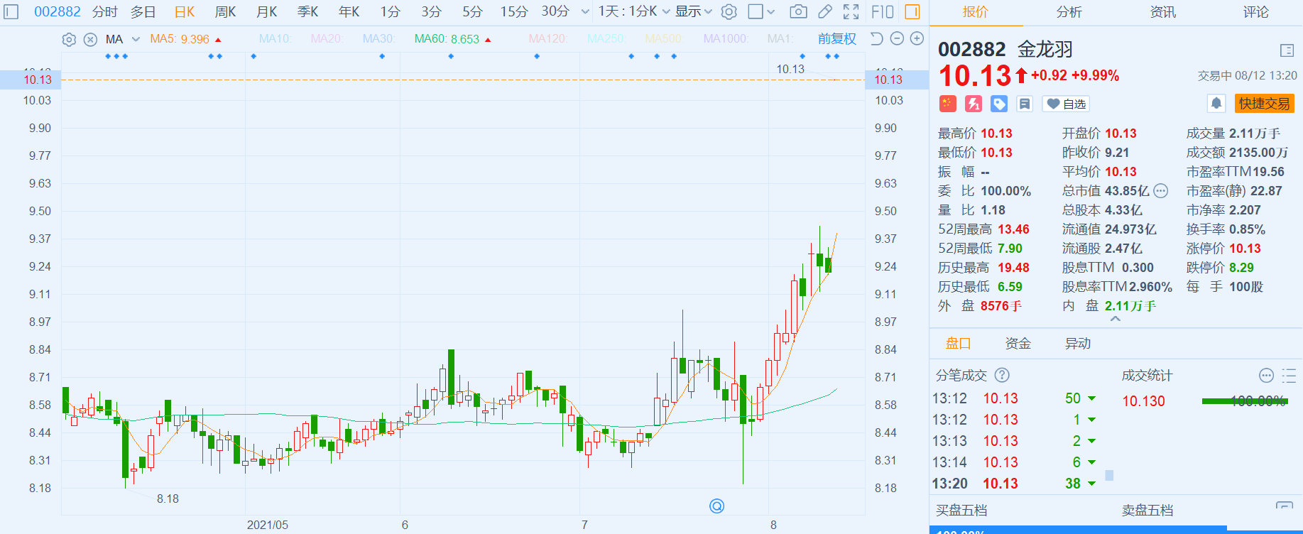 金龙羽(002882.Z)一字涨停,报10.13元,股价创近10个月新高,买一封单达16万手,总市值44亿元。 金龙羽昨晚公告,全资子公司电缆实业与锦添翼签订框架协议,电缆实业拟在五年内投入不超过三亿元与锦添翼共同进行固态电池及其关键材料相关技术的研究开发,并推动研究成果产业化。锦添翼为一人有限责任公