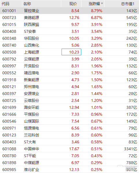 煤炭板块拉升走高,晋控煤业涨近9%,美锦能源涨近7%,陕西黑猫、华阳股份、山西焦化、云煤股份等跟涨。据商务部监测,7月份全国煤炭价格环比上涨2.4%,同比上涨21.3%,其中动力煤、二号无烟块煤和炼焦煤价格环比分别上涨2.9%、1.5%和1%。天风证券近日表示,8月份焦炭将由供需双弱转为供需两旺,总体供需或呈紧平衡的