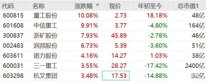 延续昨日强势,机械股今日再度集体走强。其中,厦工股份连续第二日涨停,中信重工涨停,三一重工继昨日涨停后今日盘中一度再涨近6%。 业内人士普遍认为,随着专项债的密集发放,基建、房地产等项目陆续落地,下半年机械行业将走出低谷。另外,C最新预估,预计今年7月挖掘机(含出口)销量约为18500台,同比下降