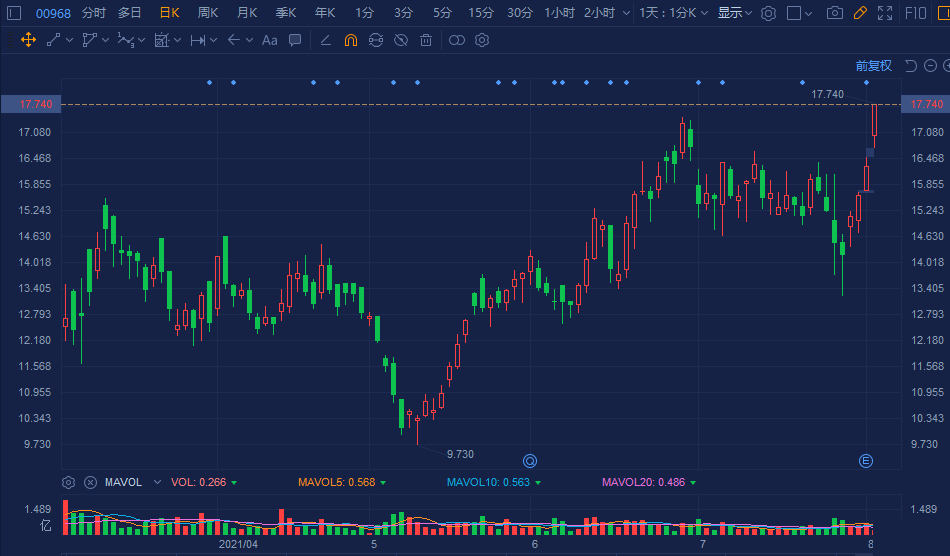 信义光能(0968.HK)高开高走,现涨幅扩大至9%,4日累计升幅达25%。现报17.74港元创5个月新高价,总市值达1578亿港元。 信义光能2日公告称,上半年收益80.74亿港元,同比增74.7%;权益持有人应占溢利30.72亿港元,同比增118.4%。交银国际重申信义光能”买入“评级,调高2022及2023年每股盈利预测3.2%及6.3