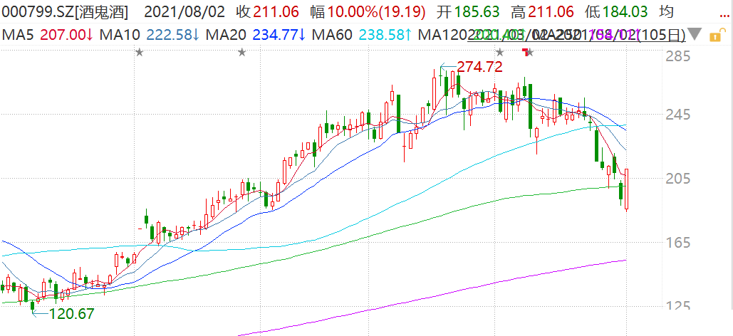 白酒股强势,白酒板块指数涨超5%,其中,酒鬼酒封涨停板,报价211.06元,暂成交26亿元,市值686亿元。