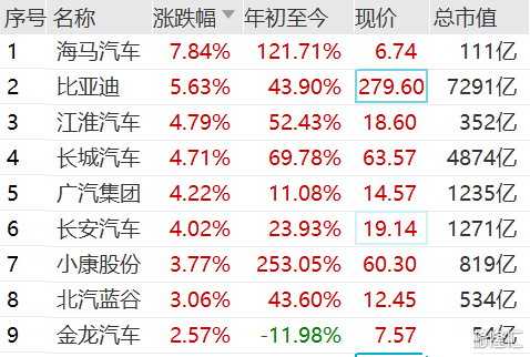 上周的中共中央政治局会议强调,要挖掘国内市场潜力,支持新能源汽车加快发展。今早港A两地汽车股集体走强。A股海马汽车涨近8%,比亚迪涨超5%,江淮汽车、长城汽车、广汽集团和长安汽车涨超4%,小康股份涨近4%;港股小鹏汽车涨超10%,比亚迪股份涨超6%,吉利汽车涨超4%,长城汽车涨近4%。