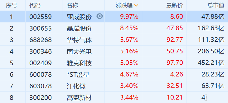 光刻胶板块拉升,亚威股份涨停,晶瑞股份大涨8.45%,南大光电涨逾5%。据外媒,三星正致力于推动光刻胶供应多元化的实现,计划在今年之内导入Iria的无机光刻胶,目前已经完成性能评估,有望应用于5超精细工艺制程。