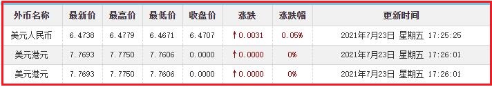 7月23日香港银行间同业拆借利率港币: 隔夜报0.03964%, 1周期报0.05071%, 1月期报0.07339%, 12月期报0.35589%。 香港银行同业拆放利率HIOR(HogkogItrakOffrdRat),指香港货币市场上,银行与银行之间的一年期以下的短期资金借贷利率,是从伦敦同业拆借利率(LIOR)