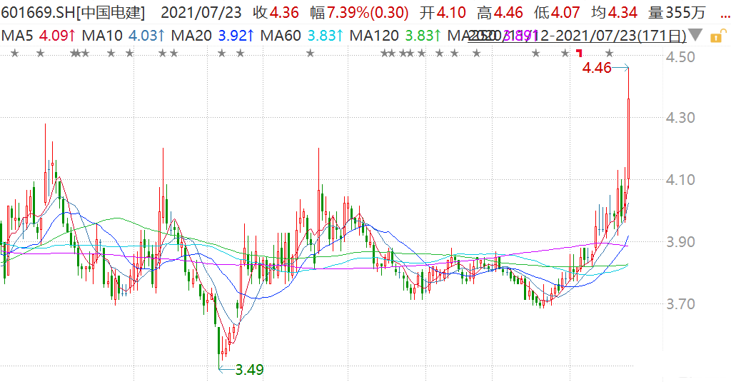 中国电建(601669.H)一度逼近涨停报4.46元,股价创逾1年新高,市值682亿元。 日前,由中国电建所属电建路桥公司、水电四局、水电三局、中国电建地产集团、西北勘测设计研究院组成的联合体正式中标徐州淮海国际港务区铁路物流中心开发项目一标段和四标段,总投资金额67.03亿元。另外,中国电建近日与波黑