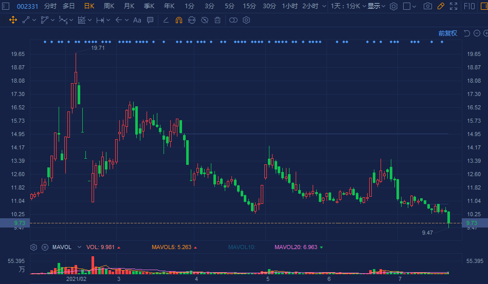 皖通科技(002331.Z)午间收跌6.35%,报9.73元创15个月新低价,总市值40亿元。该股近期呈下跌走势,月内股价已跌超20%。7月20日,卢玉平由于个人原因辞去财务负责人职务,辞职后将不再担任该公司任何职务。 值得注意的是,2021年6月,皖通科技高管离职频繁。先是皖通科技前董事长周发展于6月18日和6月28