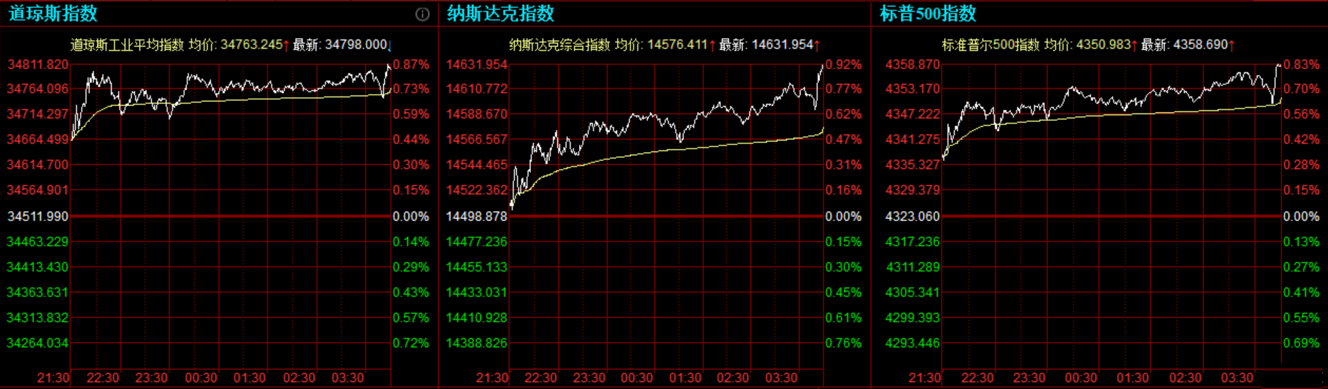 美股三大指数周三集体收涨,Q2财报季的强劲开局提振了市场人气,在连续两个交易日集体上涨后,三大股指已全部收复了周一的失地。 道指收涨286.01点,或0.83%,报34798点;纳指涨133.08点,或0.92%,报14631.95点;标普500指数涨35.63点,或0.82%,报4358.69点。 经济重启板块走强,嘉年华邮轮上涨