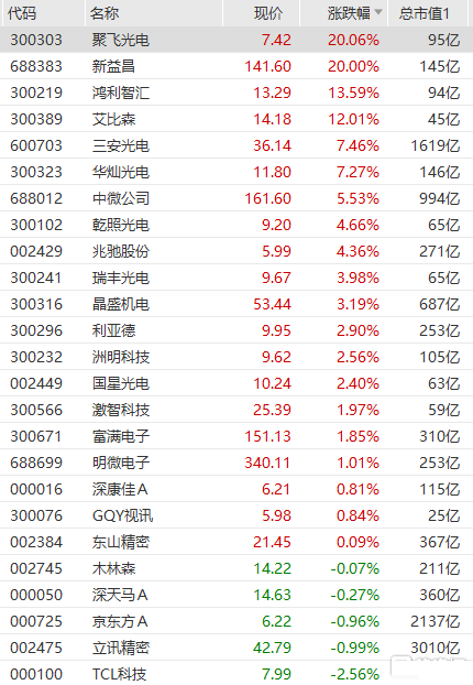 iiLD板块延续强势,聚飞光电再度触及涨停,鸿利智汇涨超13%,三安光电涨超7%创历史新高,华灿光电、中微公司、乾照光电等纷纷跟涨。据行业媒体消息,华为预计将在当日的发布会上同时发布配备iiLD三款智慧屏,分别为智慧屏55ro、智慧屏X75、智慧屏V98。配合近期苹果、三星陆续推出iiLD新品来看,今年iiL