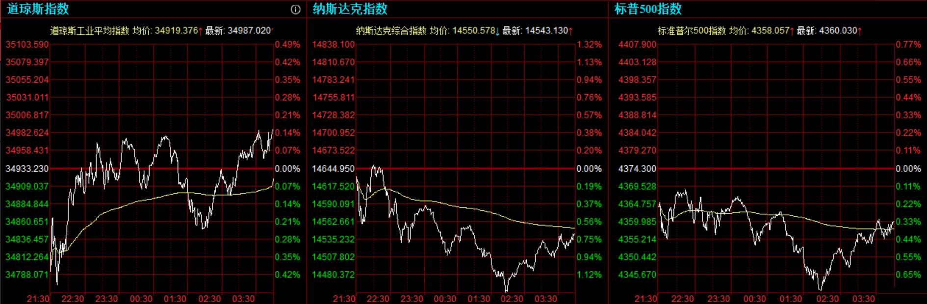 美股周四收盘涨跌不一。摩根士丹利等的财报超出预期,美国上周初请申请失业救济数据创新冠疫情期间新低,美联储主席鲍威尔连续第二天为保持宽松政策立场作辩护。但对于本轮经济复苏增速见顶和可持续性的担忧拖累股市。 道指收盘上涨53.79点,或0.15%,报34987.02点;纳指跌101.82点,或0.7%,报14543.13