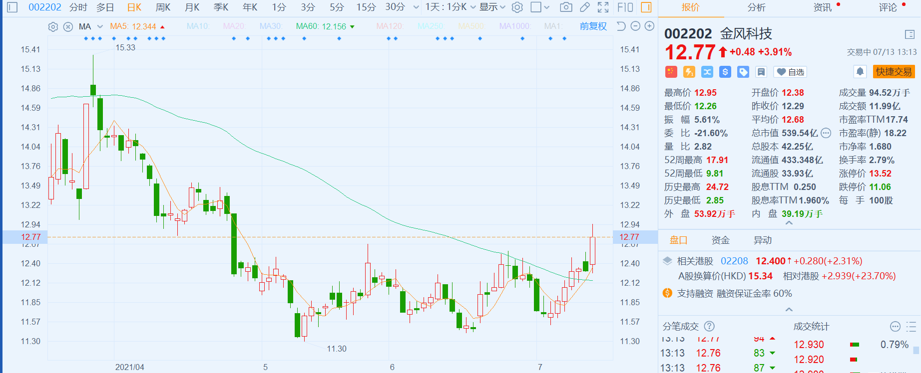 金风科技(002202.Z)涨约4%,报12.77元,总市值540亿元。 昨日,金风科技获陆股通净买入2246.34万元,近5日北上资金呈现持续买入状态,累计净买入2.84亿元。