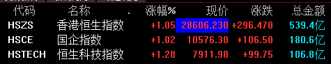 港股主要指数短线拉升,三大指数均涨超1%,恒生科技指数更是涨至1.47%。汽车、生物医药板块涨幅居前,大型科技股集体上扬。