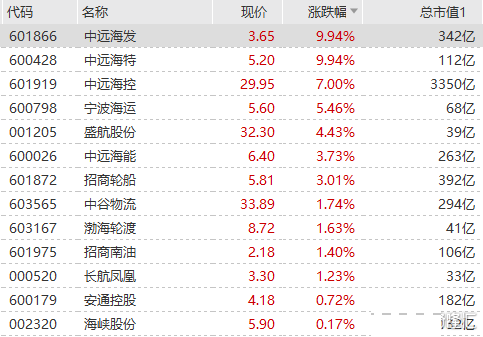 海运板块大幅走高,中远海发、中远海特双双涨停,龙头中远海控大涨7%续创多年新高,宁波海运、盛航股份、中远海能等集体跟涨。 港口拥堵供应链不畅,出口继续大幅增长,集装箱运输需求旺盛,加上受困疫情运力下降,多重因素下,出口集装箱运价持续上涨。有市场传言称,7月1日起,海运公司又要加一轮附加费,在