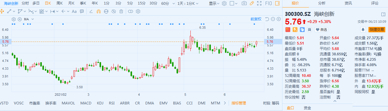海峡创新(300300.Z)股价高位震荡,盘中最高见5.81元创一个月新高,现报5.76元,涨幅5.3%,最新总市值38.67亿。 近日,公司与发包人汇天科技签订了《北京市通州区IDC数据研发中心工程施工合同》就北京市通州区IDC数据研发中心1#、2#、18#楼数据中心建设工程项目的施工建设达成协议,合同金额约为7.53亿