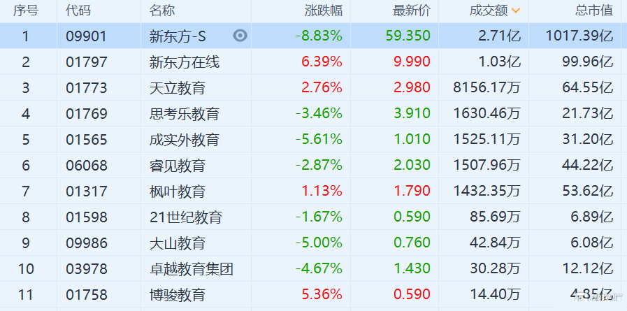 经历一轮普跌后,K12教育股走势出现分化,新东方续跌近9%,思考乐教育跌3.46%;而新东方在线则反弹6.39%,天立教育反弹2.76%。据路透,中国将对规模1200亿美元的课外培训行业出台比预期更为严厉的打击措施,包括试行禁止假期培训和限制广告。新规最早将于下周公布,并于下月生效。新规可能会使补习公司的年收入减少70
