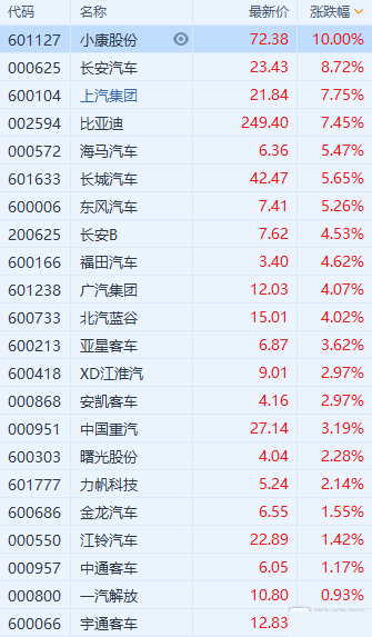 港A两市汽车股午后涨幅扩大,港股中,长城汽车涨超6%,比亚迪股份、吉利汽车涨超5%;A股中,小康股份涨停,上汽集团、比亚迪涨超7%。中国汽车工业协会主办的第11届中国汽车论坛6月17日-19日在上海嘉定举办,中汽协常务副会长兼秘书长、世界汽车组织(OICA)主席付炳锋表示,预计今后5至8年,中国将有近2亿辆国IV及以下