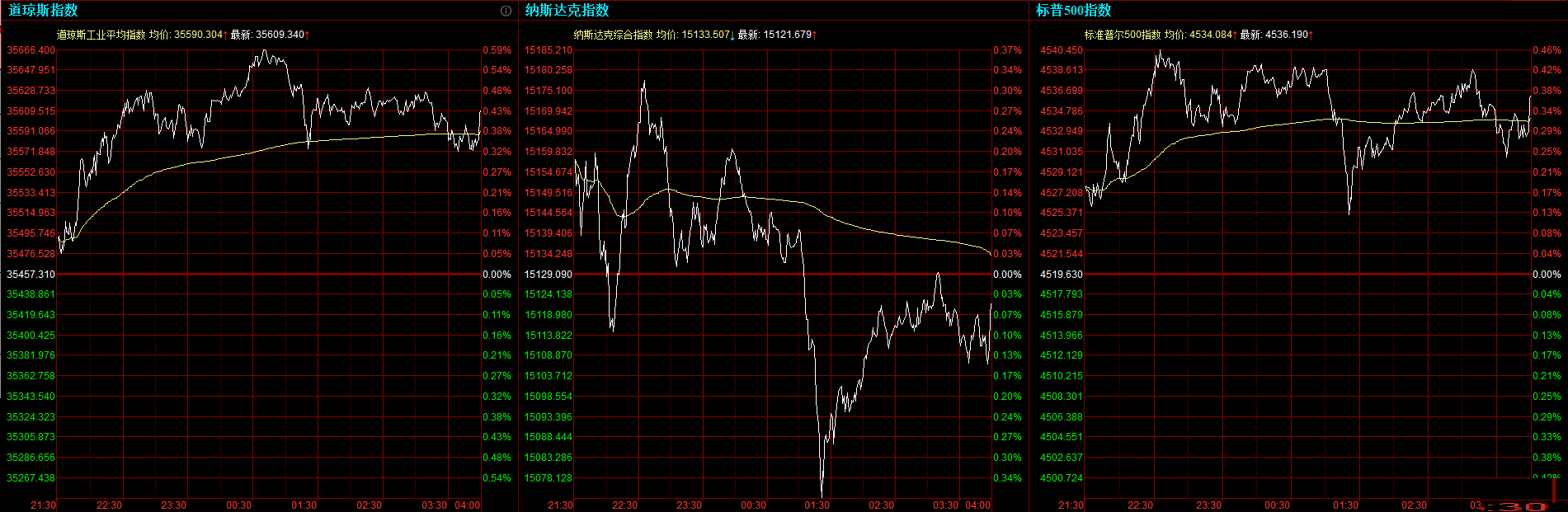 优异的三季报继续提振投资者的情绪,三大股指仅纳指微跌,道指盘中一度触及历史高点,标普500指数连续第六个交易日收涨,距离历史高点不到0.2%。美联储褐皮书显示,经济活动以“缓和至温和”的速度增长,但劳动力与供应链紧张遏制了经济增长,承认通胀居高不下。 道指涨152.03点,或0.43%,报35609.34点