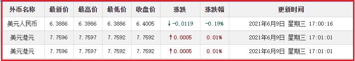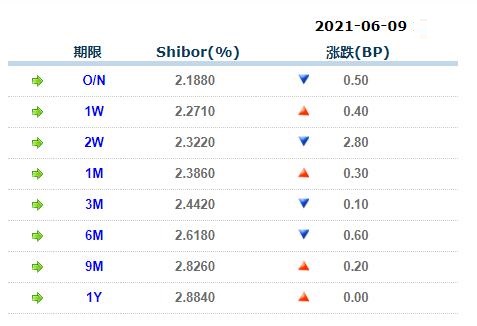 6月9日香港银行间同业拆借利率港币: 隔夜报0.03714%, 1周期报0.05964%, 1月期报0.09018%, 12月期报0.39071%。 香港银行同业拆放利率HIOR(HogkogItrakOffrdRat),指香港货币市场上,银行与银行之间的一年期以下的短期资金借贷利率,是从伦敦同业拆借利率(LIOR)变