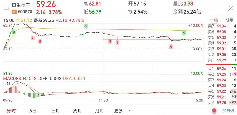 2021年10月19日早盘09时42分,恒生电子(600570)出现异动,股价大幅拉升触及涨停,创1月新高(前复权价格)。截至收盘该股报59.26元/股,成交量4.29万手,换手率2.94%,振幅10.54%,量比3.98。 该股最近一日(2021-10-15)融资融券数据为:融资余额216808.01万元,融资买入额4055.98万元,融券余
