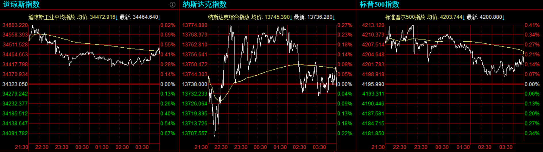 美股三大指数收盘涨跌不一,周四投资者迎来了大量经济数据,截止5月22日当周美国首次申请失业救济人数降至40.6万,为连续第四周下降,市场预期42.5万;美国一季度实际GD年化季环比修正值高于6.3%,与前值持平,预期6.5%。拜登拟提出6万亿美元的基建预算。美国财长耶伦呼吁加大支出,强调通胀上升是暂时的。 道
