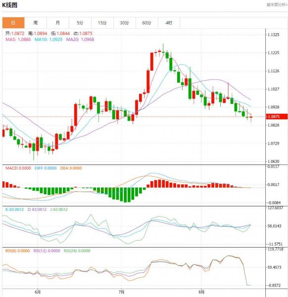 周一盘中,欧元兑美元上升至0.0021,增幅0.19%。欧元兑美元连三日收于重要费波纳奇点位下方,非常不祥。 欧元兑美元已连续三个交易日收于费波纳奇点位1.0880下方。1.0880是5-7月升势1.0635-1.1276的61.8%费波纳奇回档位,连三日收于下方,增加了未来几个交易日出现更大跌幅的可能性。14日动能仍为负值,