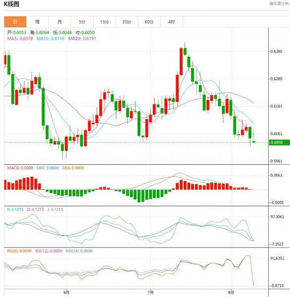 亚盘市场 1、09:30中国7月CI年率前值0.00%,预测值-0.40%; 数据影响:公布值gt预测值=利空澳元 欧盘市场 1、16:00中国7月2货币供应年率前值11.30%,预测值11.1%; 数据影响:公布值gt预测值=利好澳元 纽盘市场 1、22:30美国至8月4日当周IA原油库存(万桶)前值-1704