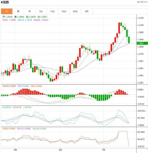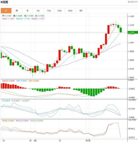 周四盘中,欧元/美元货币对1.1146/1.1145,下跌至-0.0051,跌幅-0.46%。欧元区消费者信心有望进一步复苏。 潘森宏观首席欧元区经济学家ClauVit在本月欧元区消费者信心继续小幅上升后的一份报告中表示,“缓慢的反弹仍在继续”。7月消费者信心指数为-15.1,较6月上升1点,超出市场预期。