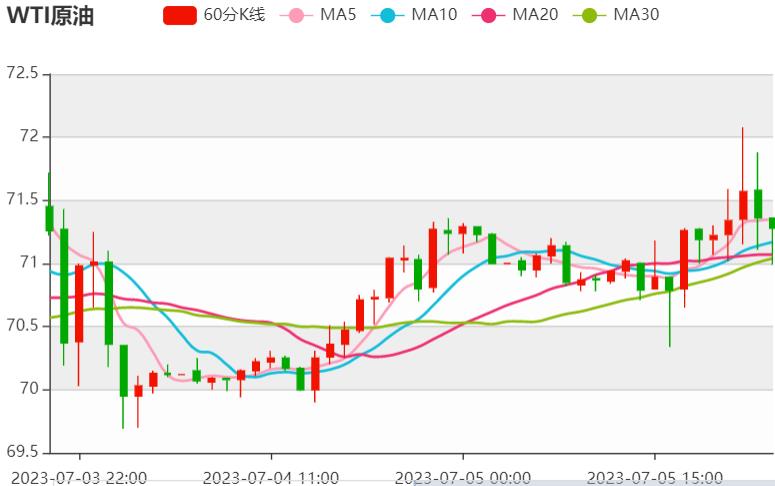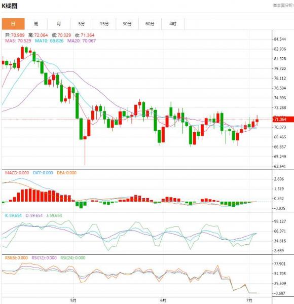 星期三(七月五日)亚洲时段,美原油暂时保持了昨天的大部分涨幅。沙俄宣布8月减产造成供应预期紧张,继续为油价提供支撑。然而,中国财新服务业I数据弱于市场预期,对全球经济放缓的预期仍令多头保持警惕。 原油盘面分析: 昨天,美国供应管理协会(I)报告称,由于I数据继续低于50