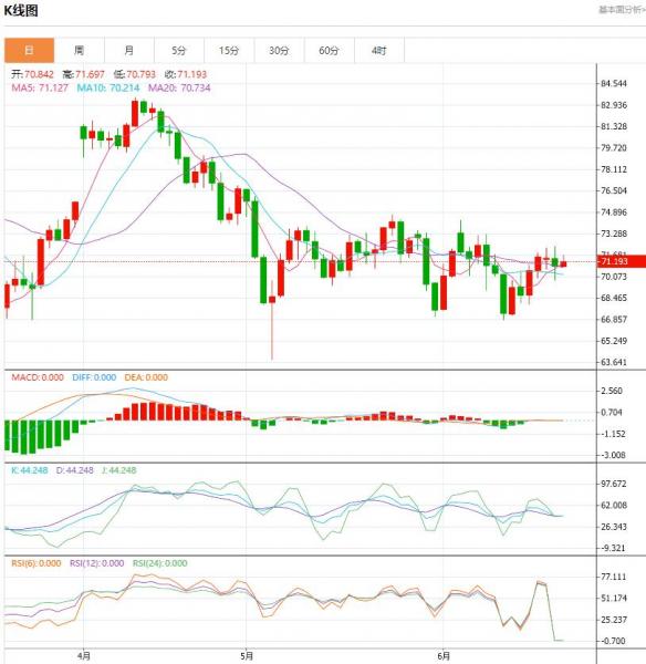 星期二(6月20日)油价回落,原因是对需求增长放缓,和伊朗与俄原油供应增加的预期,让市场看跌情绪得到加剧。 原油盘面分析: 本周初,油价一直非常波动,因为交易商消化了伊朗产量增加和中国稍微温和的降息所带来的经济前景疲软的影响。现阶段有很多变动因素,但就原油价格而言,目前负