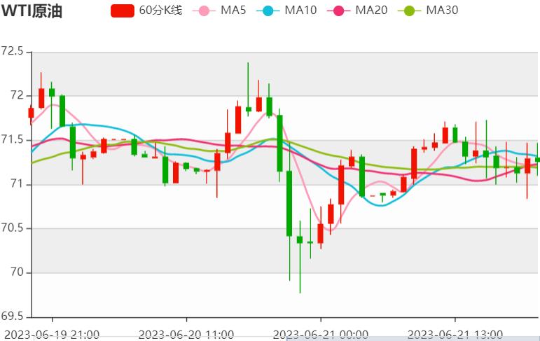 星期二(六月二十日),在亚欧期间,美国原油稍有走弱,而伊朗的原油出口和产量在2023年创下新高。摩根大通将今年布伦特原油价格的平均预测从之前的每桶90美元下调至81美元。 原油盘面分析: 今天的油价相对持平,反映了昨天的交易时段,该交易时段普遍震荡但最终没有方向。自上周初跌至20