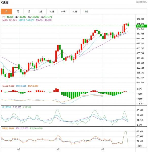 周一盘中,美元/日元货币对141.868/141.855,下跌至-0.017,增幅-0.01%。欧洲央行行长拉加德称:不考虑暂停加息,很可能会在7月份继续加息,欧元回补新闻发布会开始以来几乎所有跌势,交投在1.0874附近。 货币对:美元/日元 行情分析:汇价高见141.967,低见141.716。上一交易日,汇价收于141.874