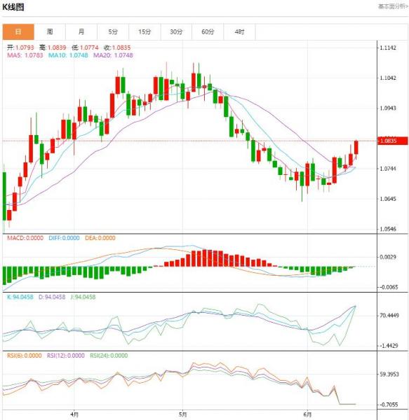 周三盘中,欧元/美元货币对1.0837/1.0836,上升至0.0043,增幅0.40%。周三公布的数据显示,欧元区4月工业生产反弹好于预期,因建筑和设备等生产资料产出大增,抵消了消费品生产减少的影响。欧盟统计局表示,生产资料产出在3月份暴跌15.2%之后,4月份环比跃升14.7%,足以弥补耐用消费品产量环比下降2.6%和非耐用消费品