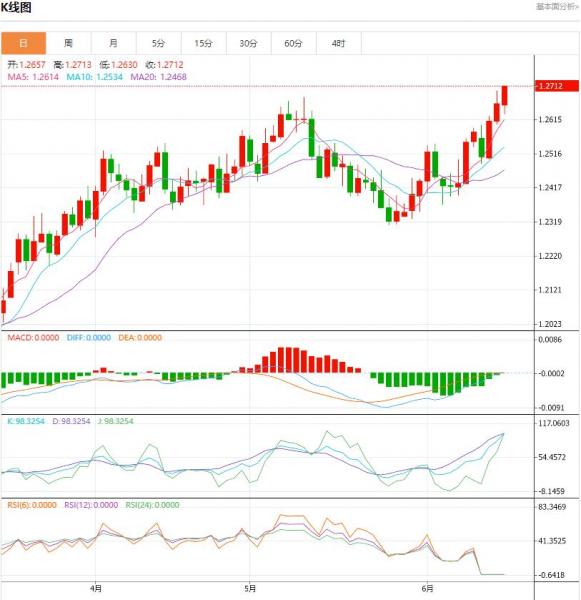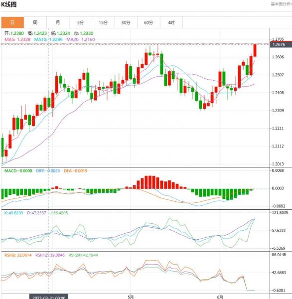 周三盘中,英镑/美元货币兑1.2680/1.2679,上升了0.0068,增幅0.54%。英镑/美元技术面进一步看涨。 10和30日均线的看涨交叉是一个非常积极的进展,14天动能指标仍是正值,加强了整体的上升潜力,有可能最终突破2023年1.2679的峰值。升穿1.2679高点,可能会带来更大涨幅;坚实的支撑位在1.2487。