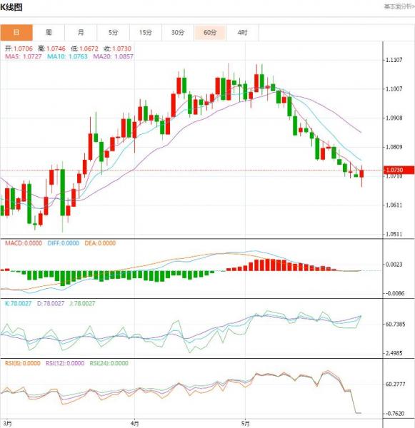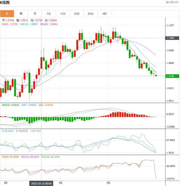 周二盘中,截止目前,欧元/美元货币对1.0731/1.0730,上升至0.0023,增幅0.22%。欧元/美元反弹风险升高,美元宰制力下滑。美国达成举债上限协议的消息传出后,避险买盘减弱,美元宰制力下滑。技术面而言,迹象显示欧元/美元空头走势正失去动能,周五K线呈现紧俏的十字星,暗示了走势犹豫不决,仍然尊重潜在熊市趋势,