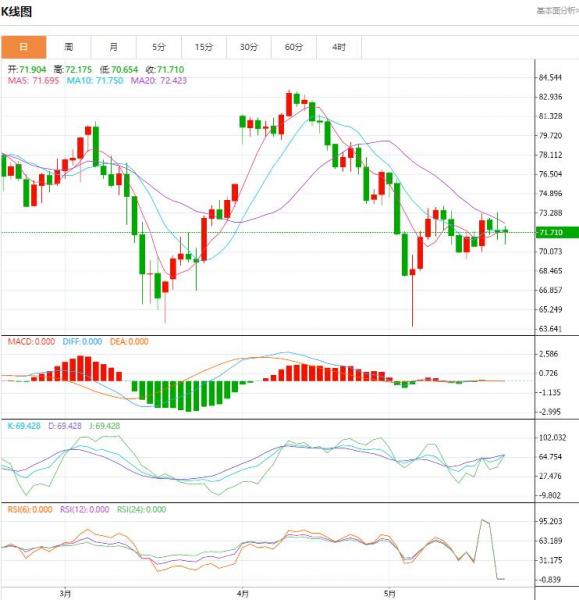 周一(5月22日),国际油价下跌,由于市场对美国债务上限谈判持谨慎态度,但加拿大和OC+产油国供应减少,IA和OC都对潜在供应短缺表达了担忧,限制了油价跌势。 北京时间16:22,YX原油期货下跌0.22%至71.53美元/桶;IC布伦特原油期货下跌0.24%至75.29美元/桶。石油市场分析提供商VadaIight的