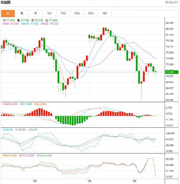 星期四(五月十一日)亚欧时段,美原油价格微涨,截至发稿,涨幅0.67%。之前美国公布的数据显示,强劲的燃料需求盖过了对美国可能出现债务违约的担忧。 原油盘面分析: WTI价格已从美国地区银行业再次爆发后引发的恐慌性抛售中部分恢复。事实上,由于石油市场试图脱离上周四的低点63.64