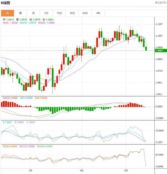 周五盘中,截止目前,欧元/美元货币对1.0885/1.0884,下跌至0.0032,跌幅0.29%。欧元/美元这波小跌后可能会重新上涨。 欧元/美元已由高点翻跌到20日波林格区间底部。汇价4月26日触及2023年高点1.1096时,已显得超涨。目前接近3-4月上涨的最低技术修正目标1.0875,1.0875是1.0517-1.1096涨势的38.2%回档