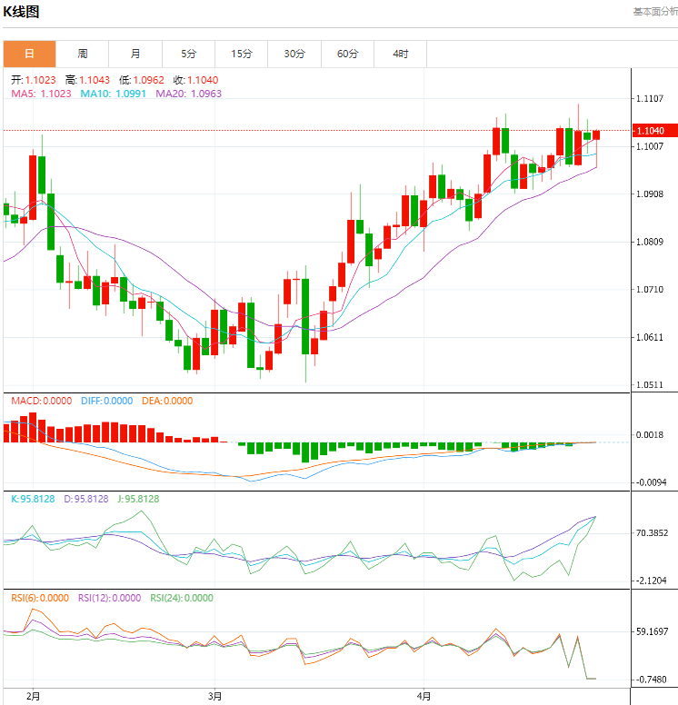 周一盘中,截止目前,欧元/美元货币对1.1035/1.1034,上升至0.0016,增幅0.14%。欧元区债券收益率因利率上升而上升,欧元区政府债券收益率周一小幅走高,市场预计欧洲央行官员将重申其提高利率的承诺。欧洲央行管委诺特表示,加息开始产生影响,但还需要采取更多措施来遏制通胀,他可能支持将利率从目前的3.25%升至5%